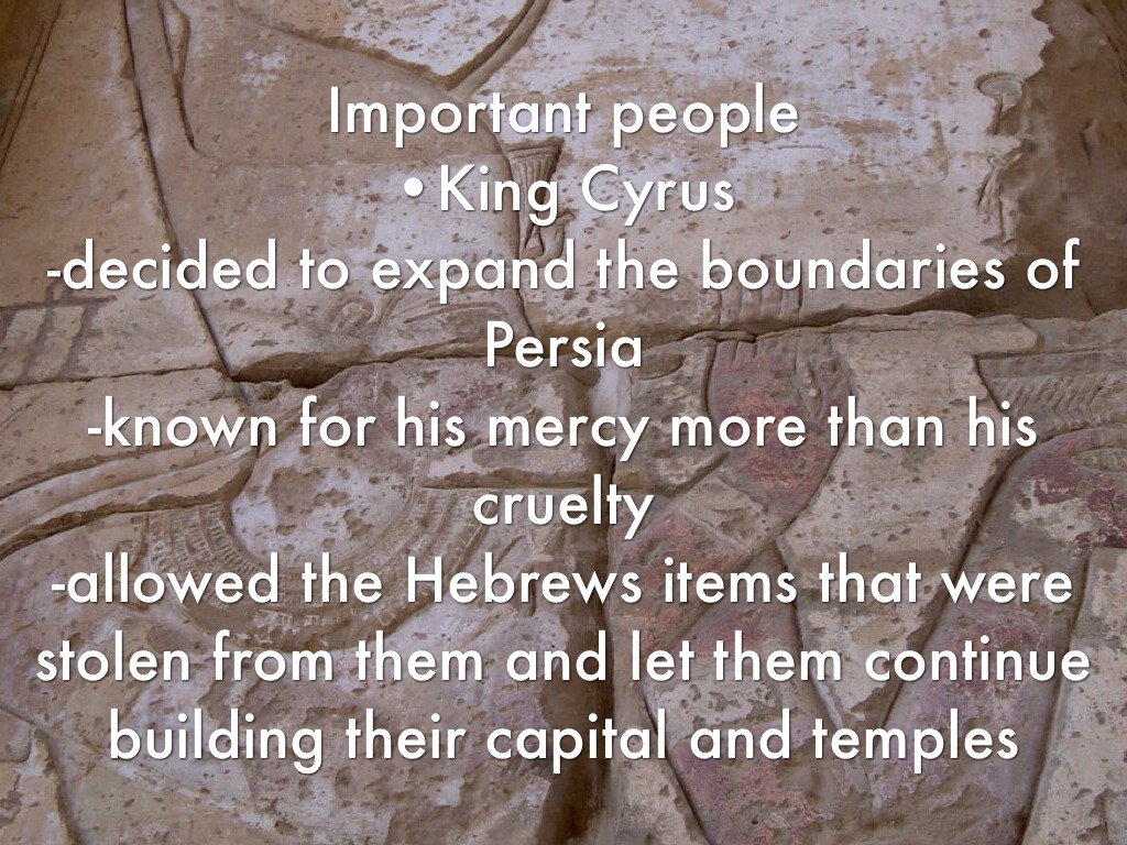 -allowed the Hebrews items that were stolen from them and let them continue building their capital and temples