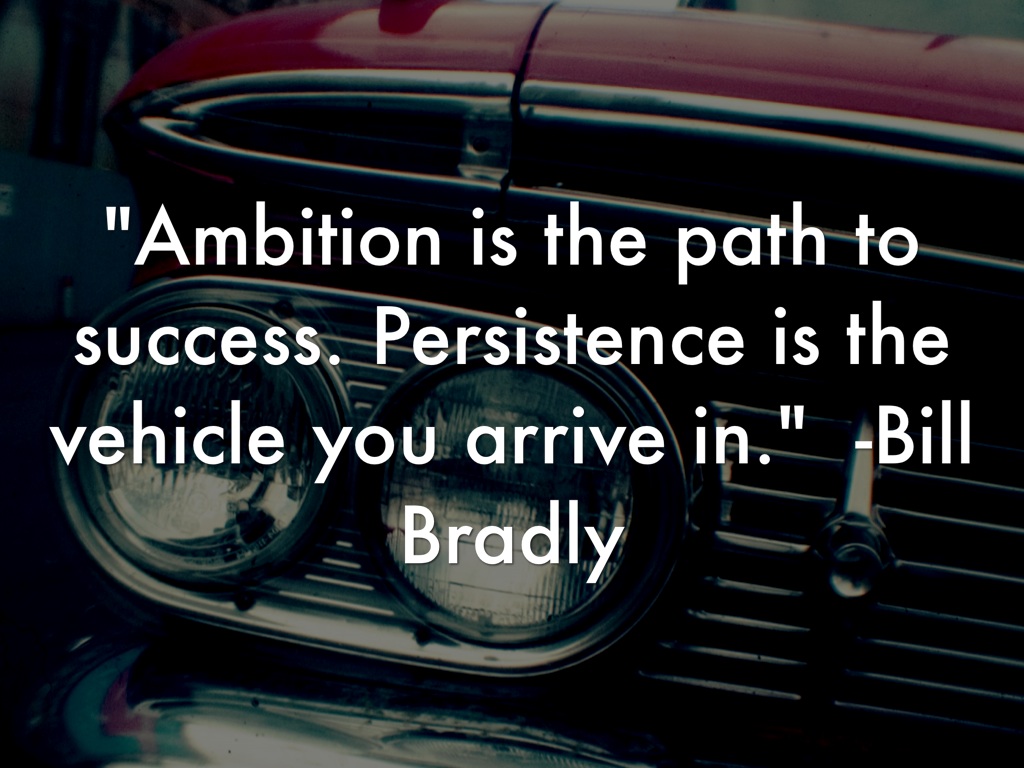 "Ambition is the path to success. Persistence is the vehicle you arrive in." -Bill Bradly