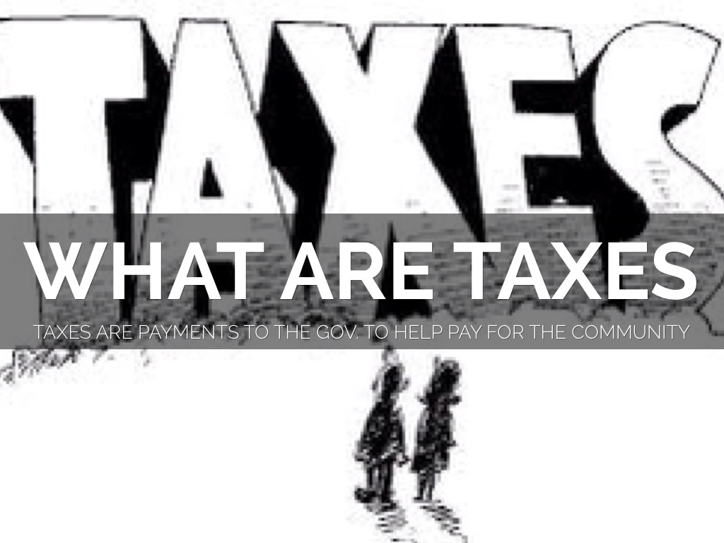 TAXES ARE PAYMENTS TO THE GOV. TO HELP PAY FOR THE COMMUNITY