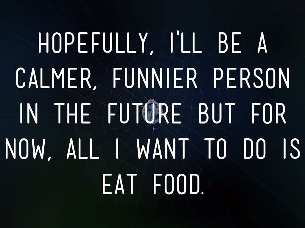 hopefully, i'll be a calmer, funnier person in the future but for now, all i want to do is eat food.