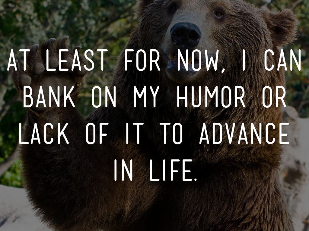 at least for now, i can bank on my humor or lack of it to advance in life.