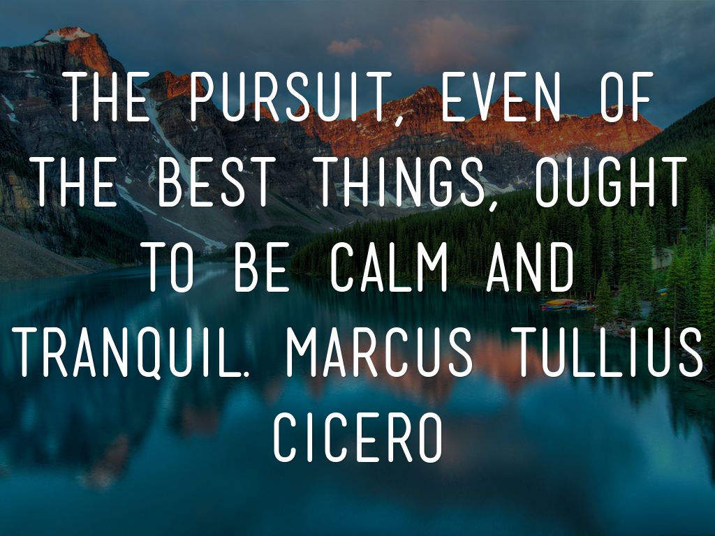 The pursuit, even of the best things, ought to be calm and tranquil. Marcus Tullius Cicero