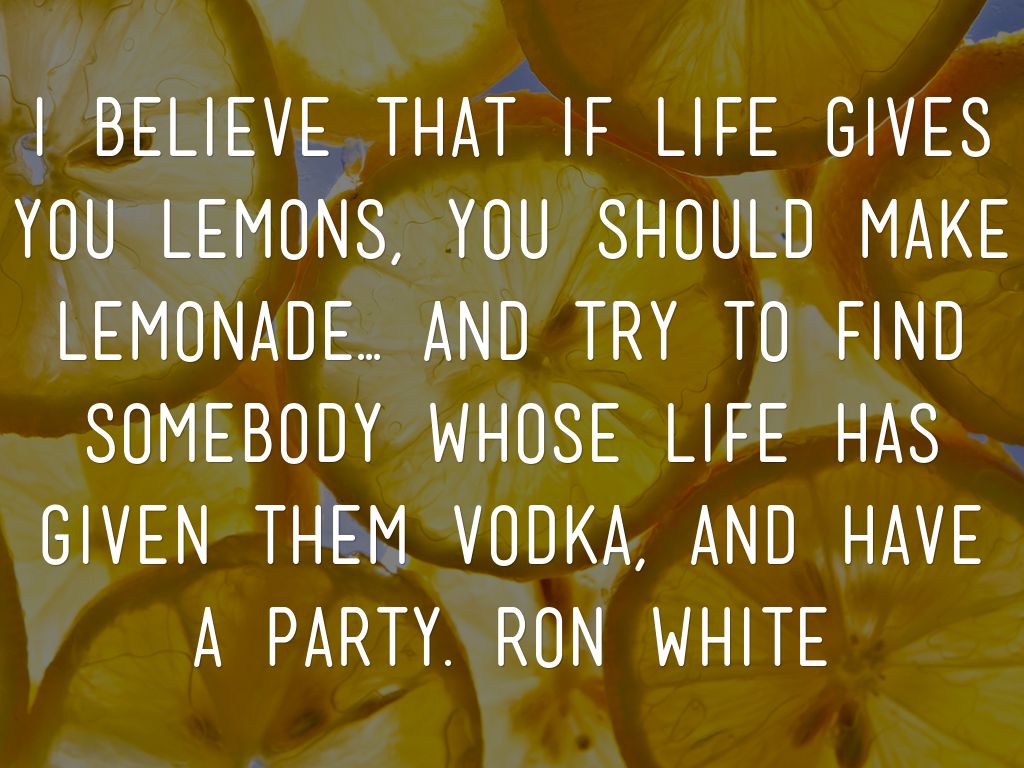 I believe that if life gives you lemons, you should make lemonade... And try to find somebody whose life has given them vodka, and have a party. Ron White