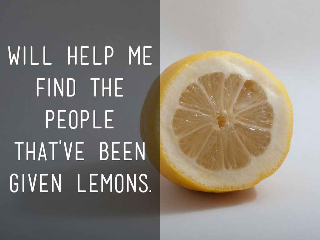 WILL HELP ME FIND THE PEOPLE THAT'VE BEEN GIVEN LEMONS.