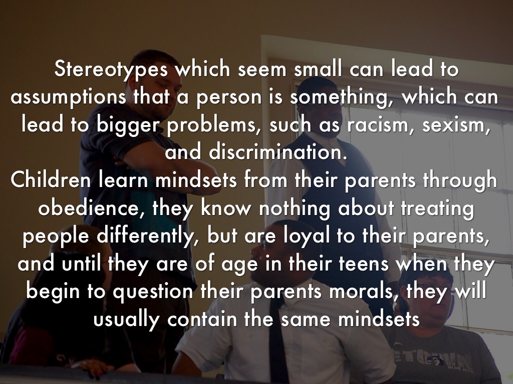 Stereotypes which seem small can lead to assumptions that a person is something, which can lead to bigger problems, such as racism, sexism, and discrimination.