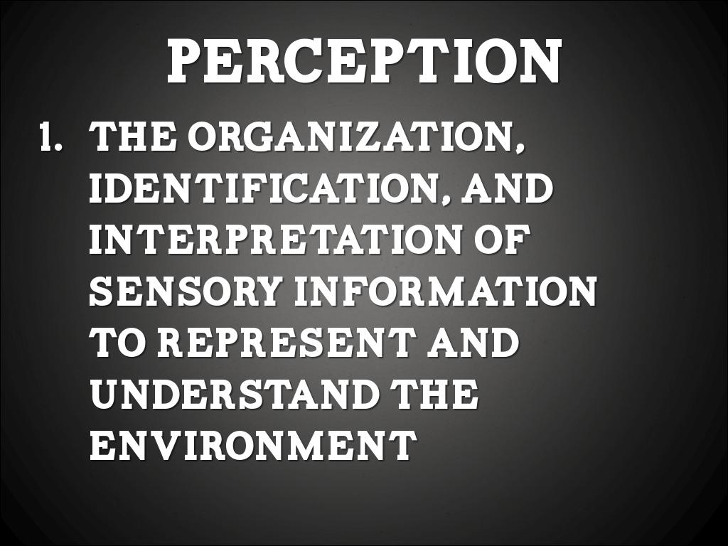 the organization, identification, and interpretation of sensory information to represent and understand the environment