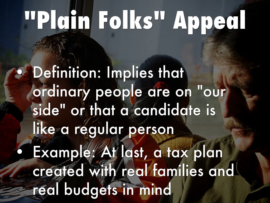 Definition: Implies that ordinary people are on "our side" or that a candidate is like a regular person