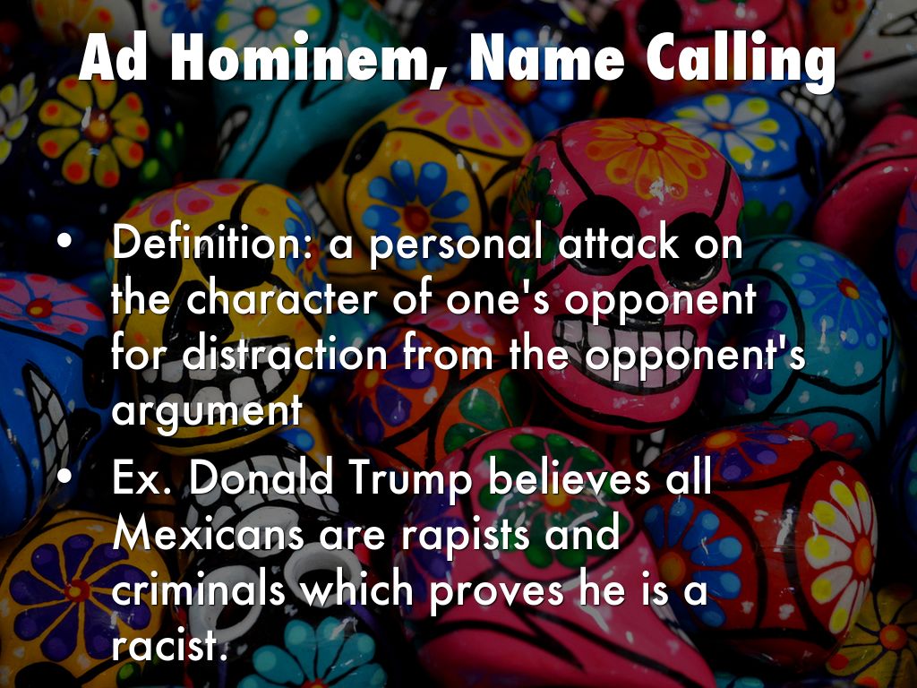Definition: a personal attack on the character of one's opponent for distraction from the opponent's argument