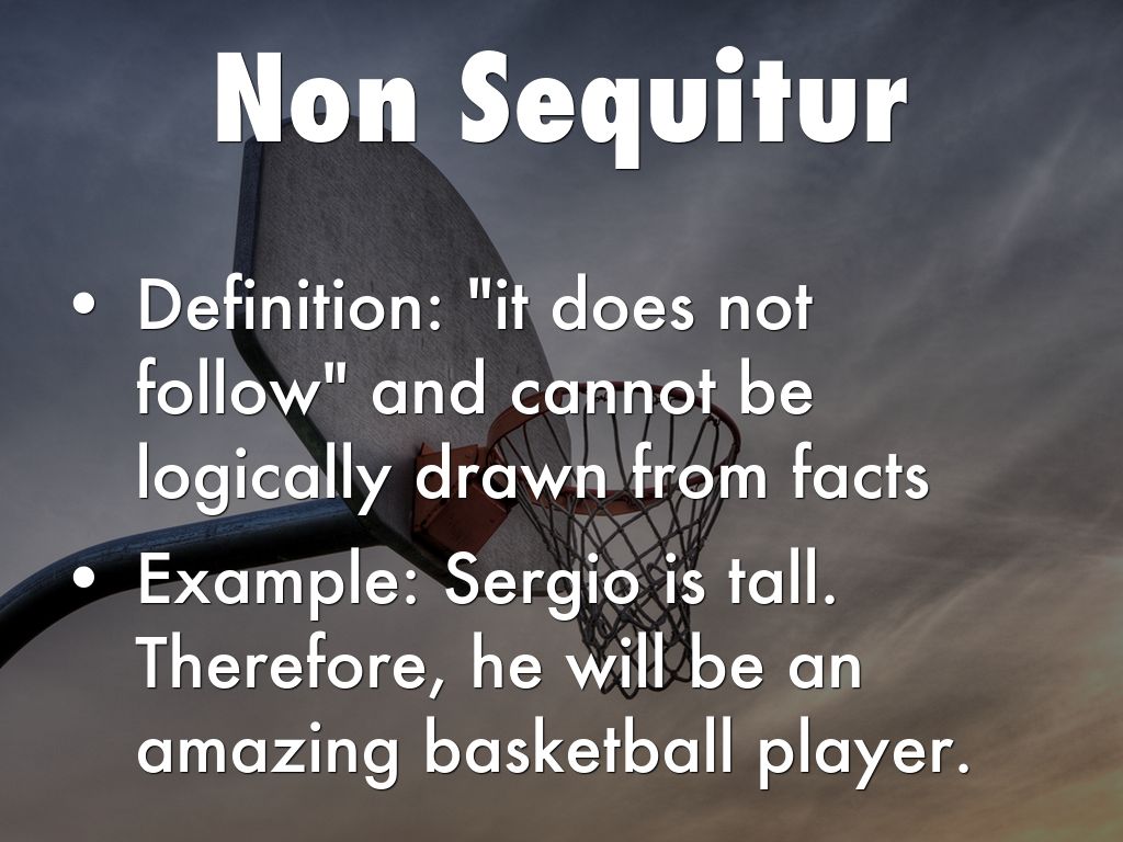 Example: Sergio is tall. Therefore, he will be an amazing basketball player.