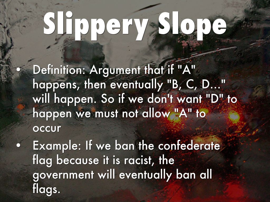 Example: If we ban the confederate flag because it is racist, the government will eventually ban all flags.