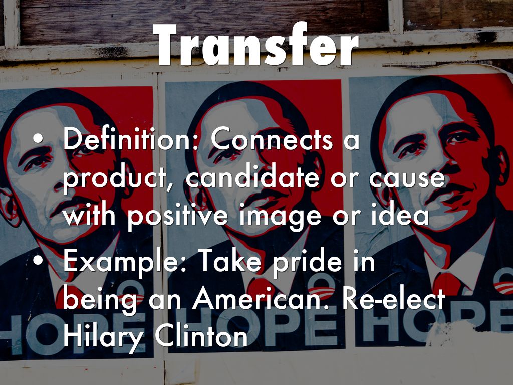 Example: Take pride in being an American. Re-elect Hilary Clinton