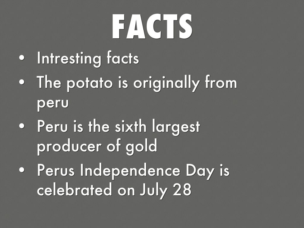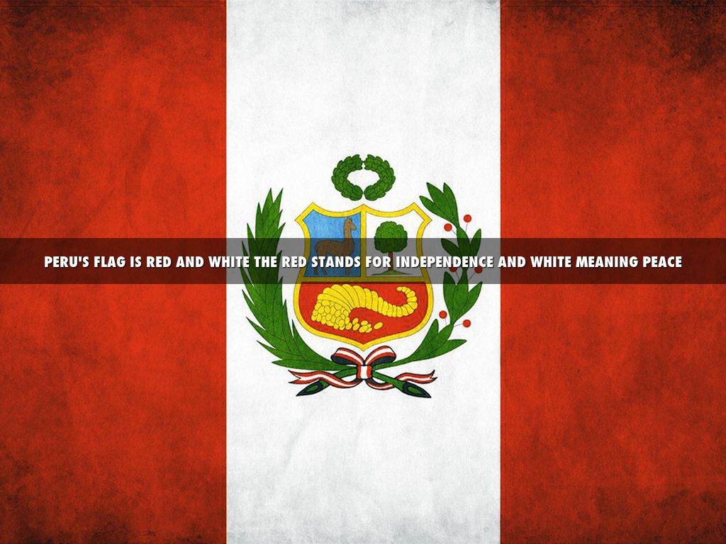 PERU'S FLAG IS RED AND WHITE THE RED STANDS FOR INDEPENDENCE AND WHITE MEANING PEACE
