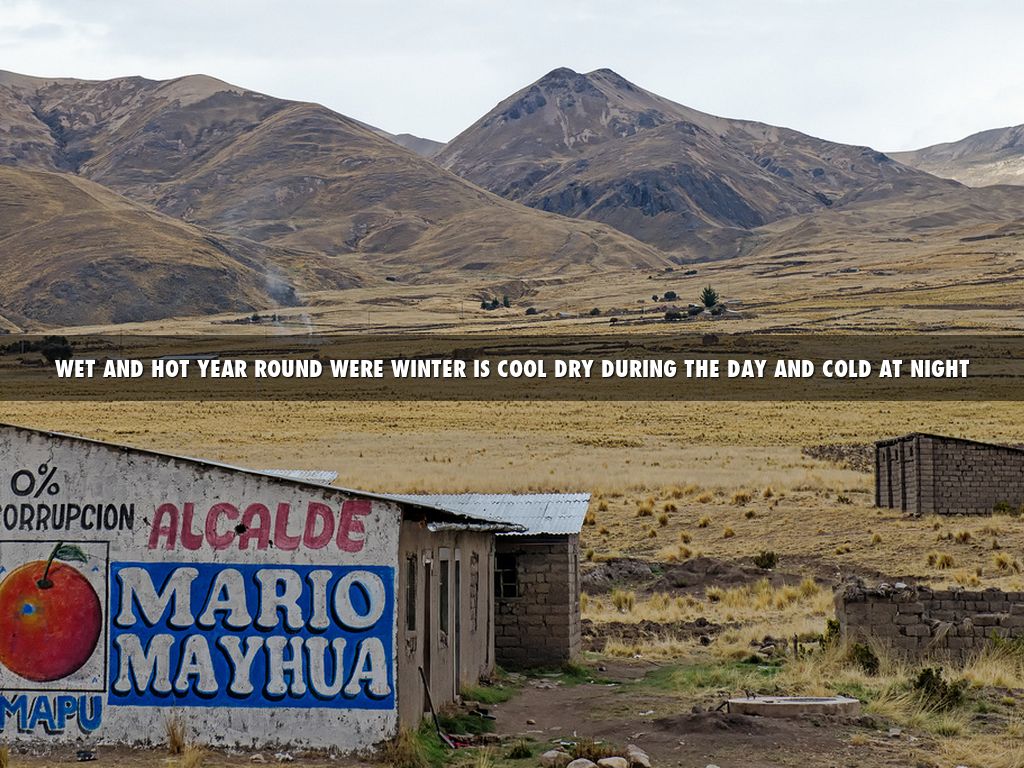 WET AND HOT YEAR ROUND WERE WINTER IS COOL DRY DURING THE DAY AND COLD AT NIGHT