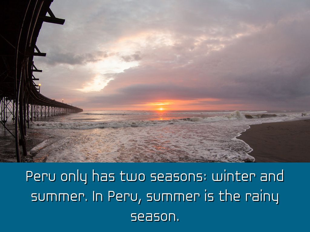 Peru only has two seasons: winter and summer. In Peru, summer is the rainy season.