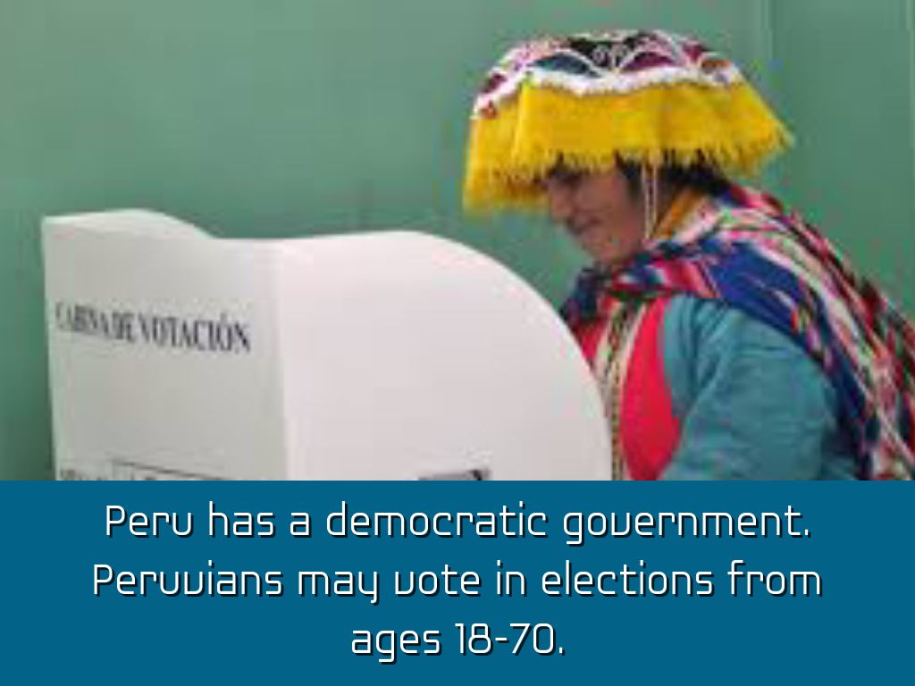 Peru has a democratic government. Peruvians may vote in elections from ages 18-70.