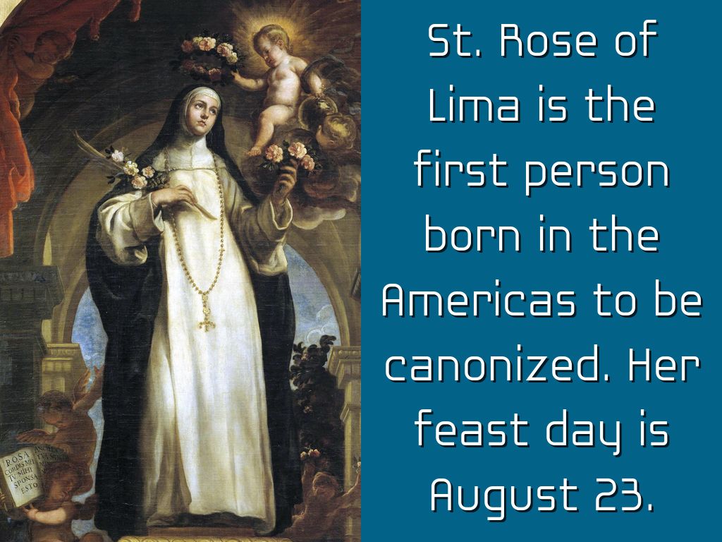 St. Rose of Lima is the first person born in the Americas to be canonized. Her feast day is August 23.