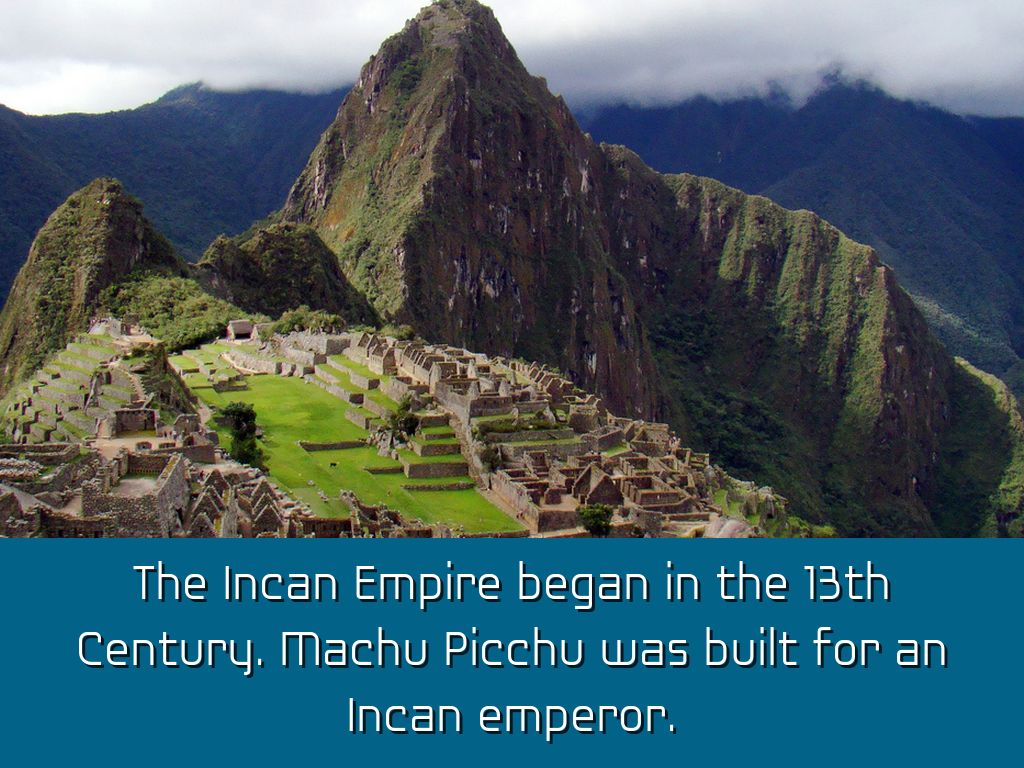 The Incan Empire began in the 13th Century. Machu Picchu was built for an Incan emperor.