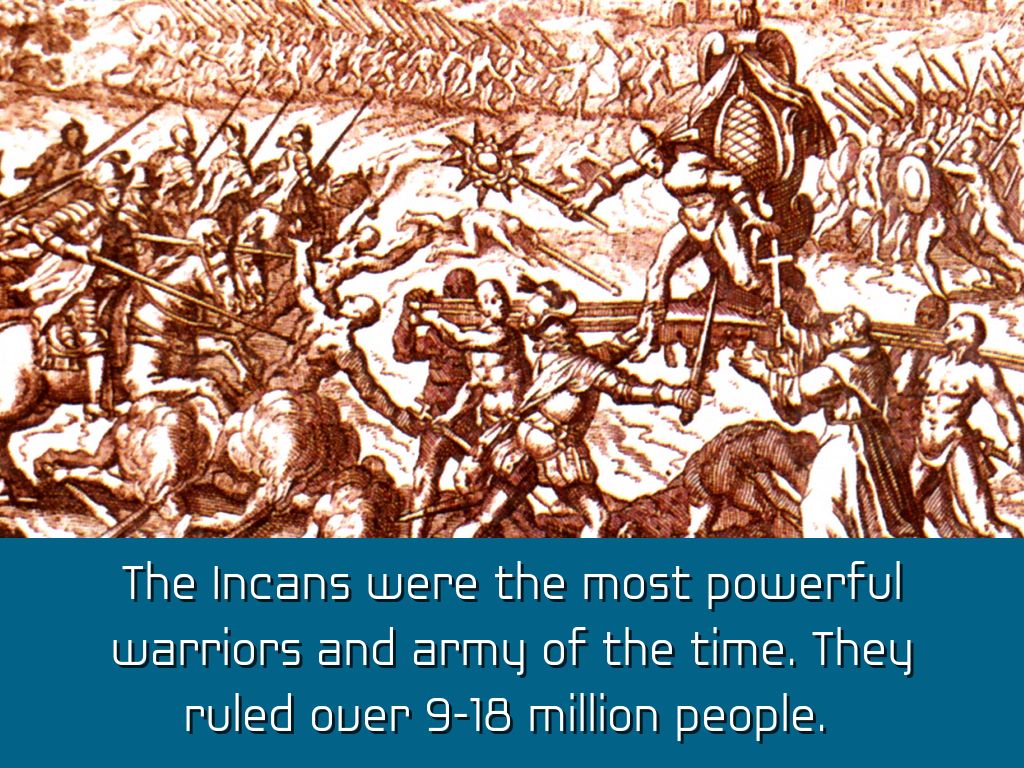 The Incans were the most powerful warriors and army of the time. They ruled over 9-18 million people.