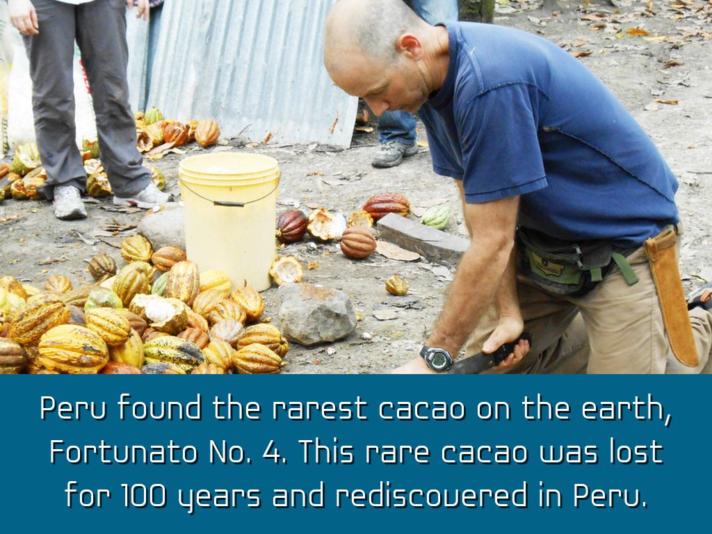 Peru found the rarest cacao on the earth, Fortunato No. 4. This rare cacao was lost for 100 years and rediscovered in Peru.