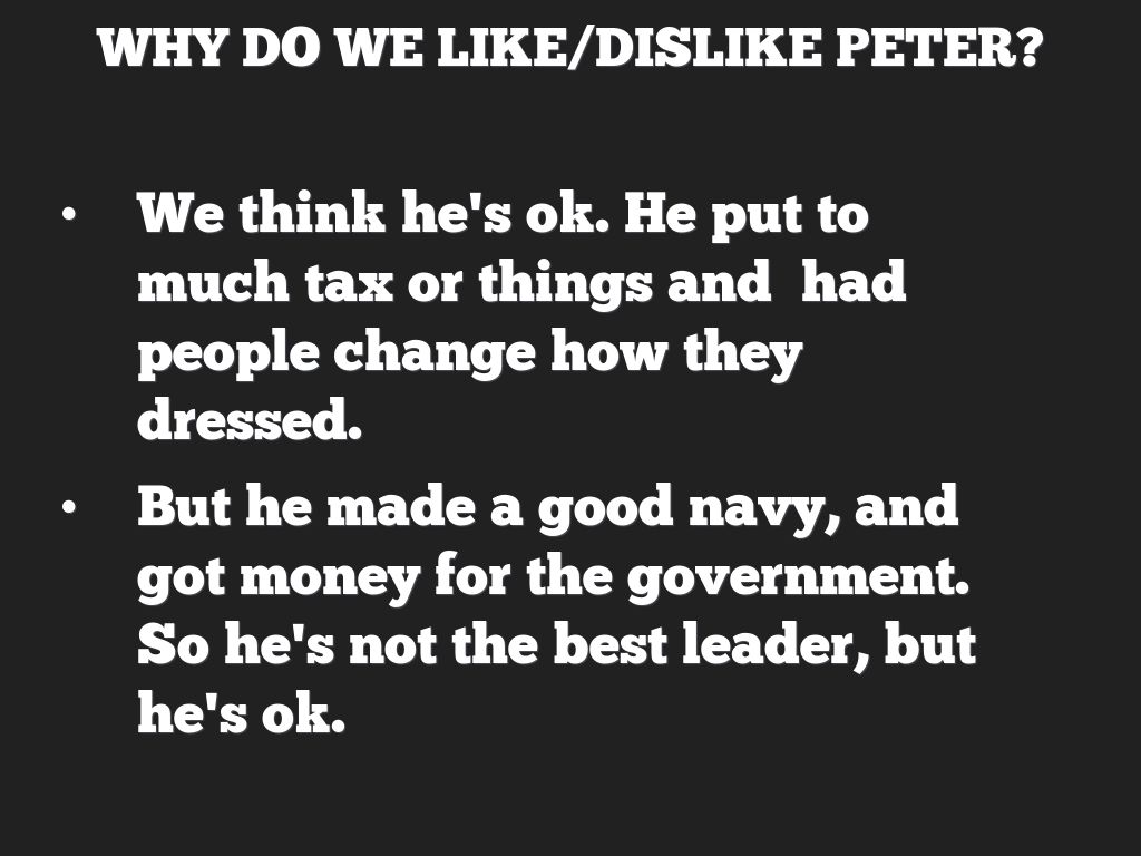 Peter was Nice guy, he didn't kill as many people as other Russian leaders, he had a family so he wasn't very lonely in life.