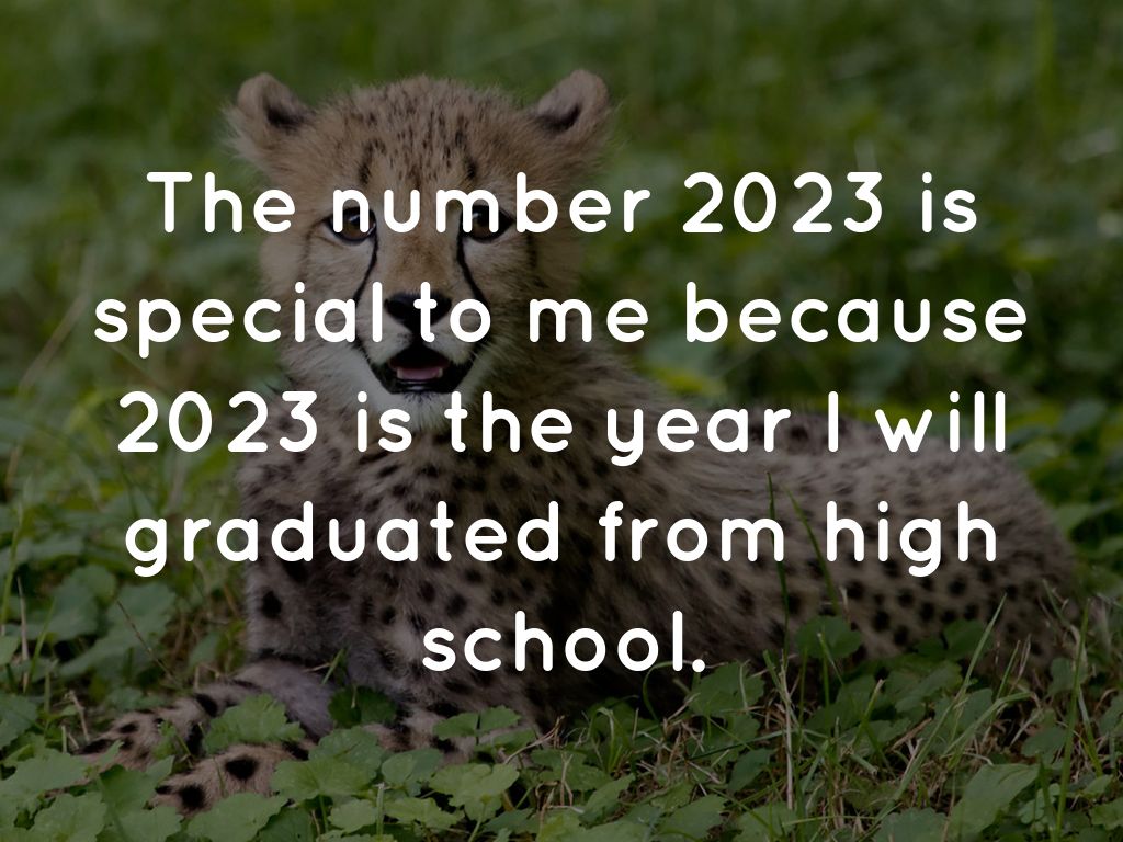 The number 2023 is special to me because 2023 is the year I will graduated from high school.