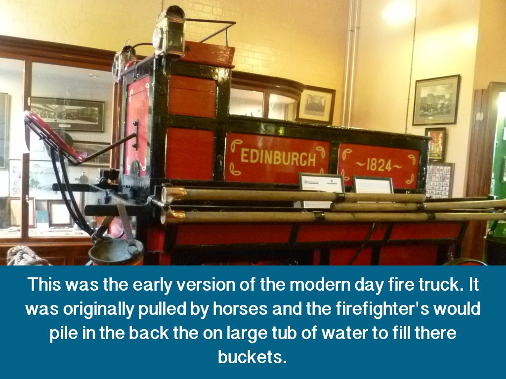 This was the early version of the modern day fire truck. It was originally pulled by horses and the firefighter's would pile in the back with the large tub of water to fill there buckets.