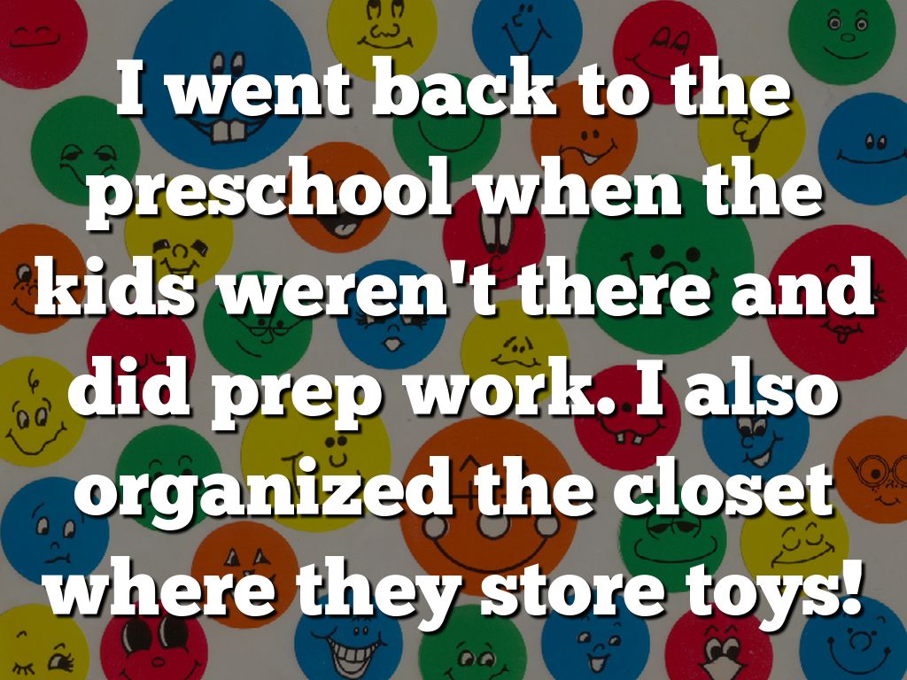 I went back to the preschool when the kids weren't there and did prep work. I also organized the closet where they store toys!