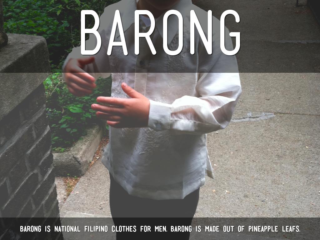 BARONG IS NATIONAL FILIPINO CLOTHES FOR MEN. BARONG IS MADE OUT OF PINEAPPLE LEAFS.