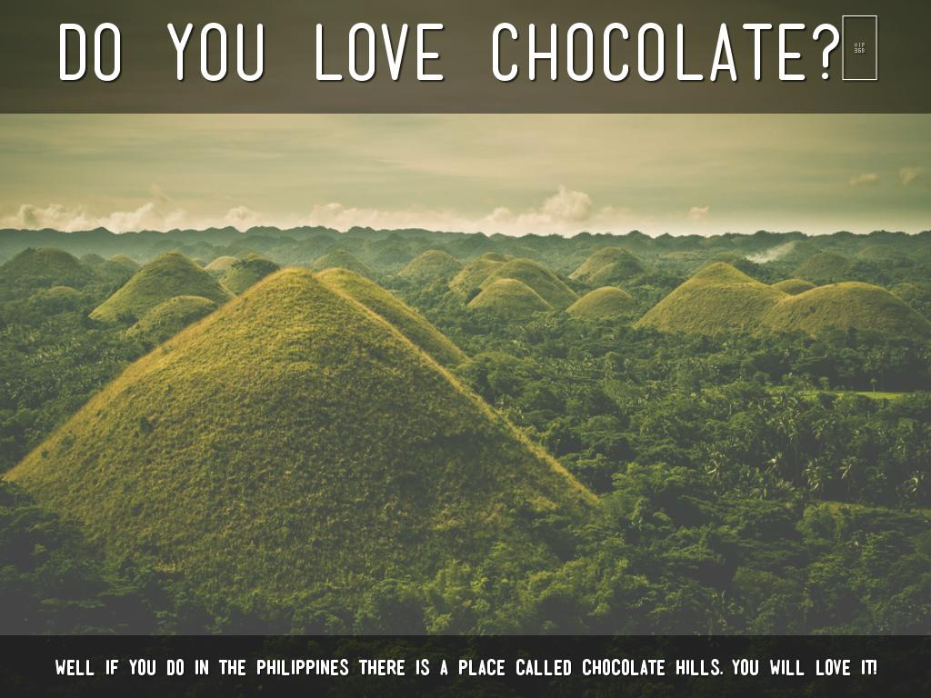 WELL IF YOU DO IN THE PHILIPPINES THERE IS A PLACE CALLED CHOCOLATE HILLS. YOU WILL LOVE IT!
