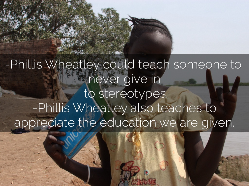 -Phillis Wheatley was a well educated slave. -She wrote many poems on African American freedom. -She was an African American slave with a chance to have independence.