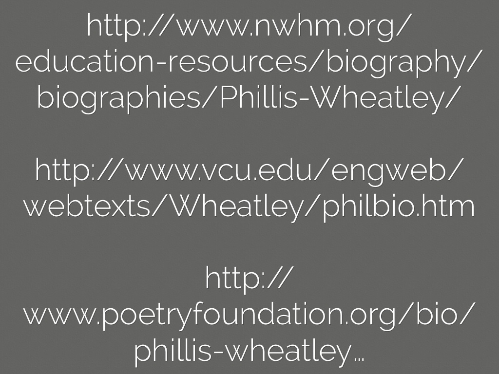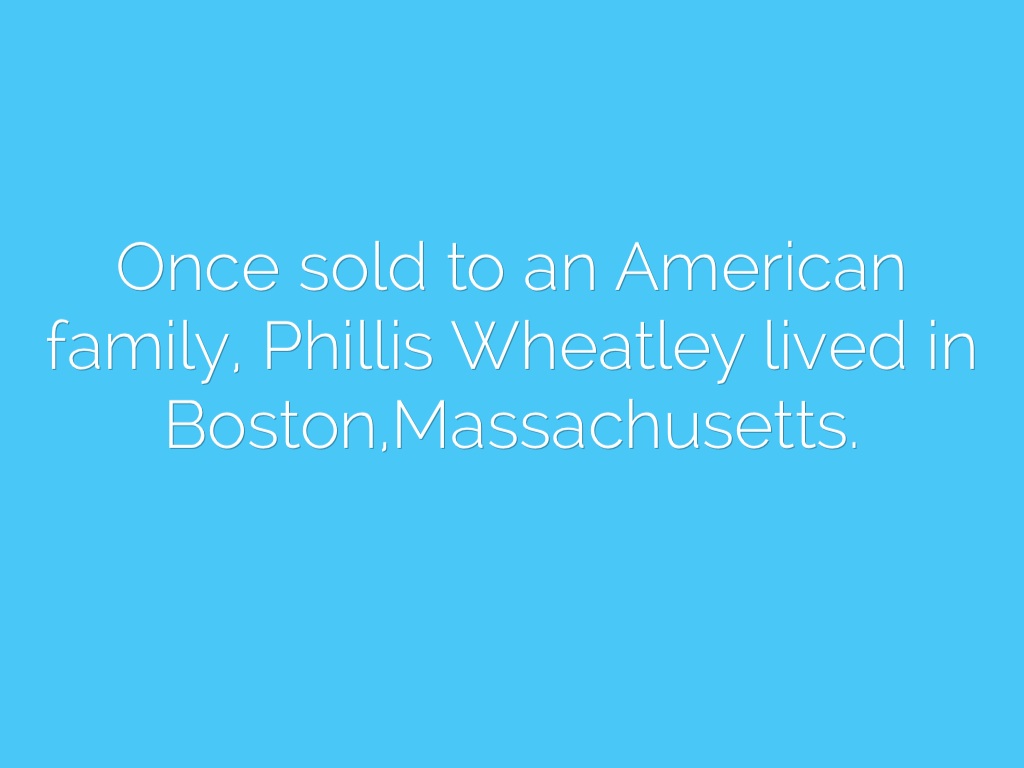 -Phillis Wheatley lived in great poverty -Her husband of two kids ran off leaving her to support the children on her own. -Her exact birth date is unknown.