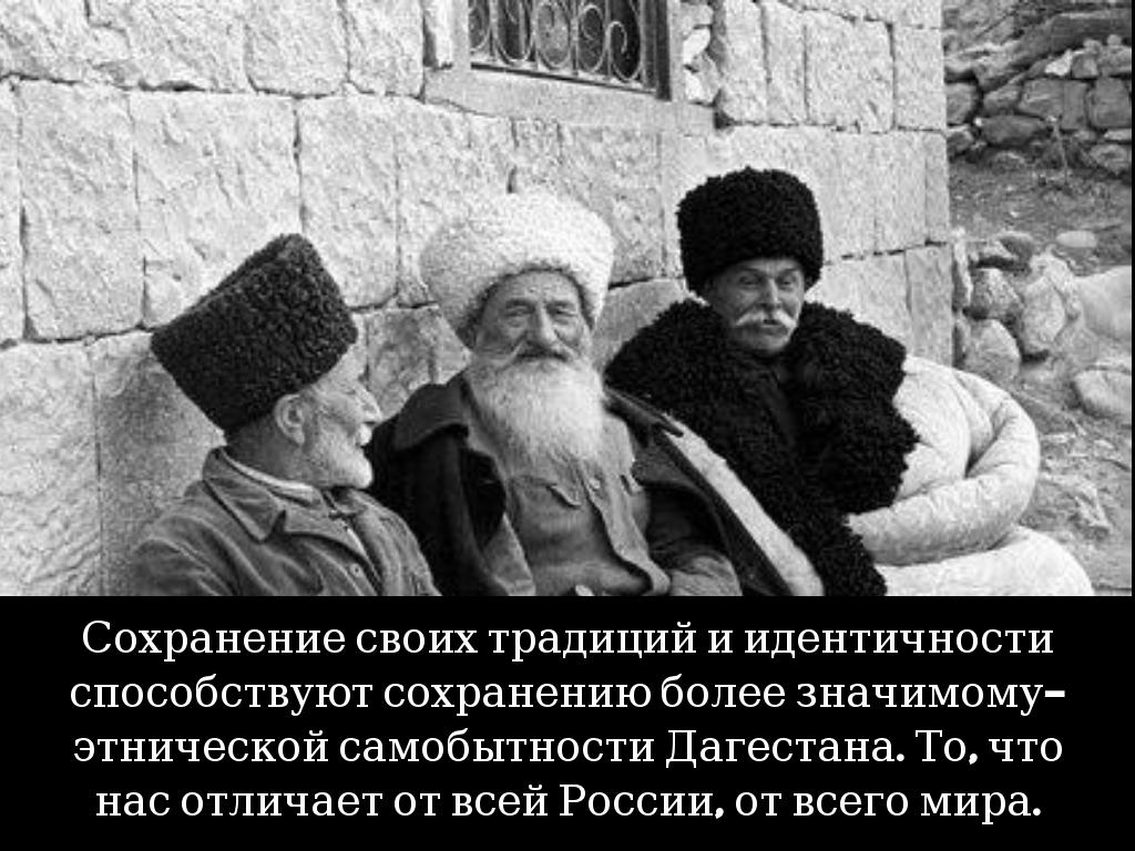 Сохранение своих традиций и идентичности способствуют сохранению более значимому-этнической самобытности Дагестана. То, что нас отличает от всей России, от всего мира.