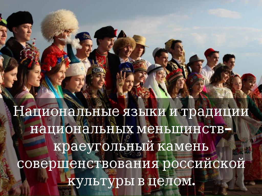 Национальные языки и традиции национальных меньшинств-краеугольный камень совершенствования российской культуры в целом.