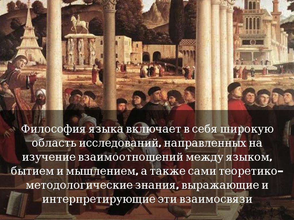 В современной гуманитарной мысли философия языка определяется в самом общем виде как такой подход к языку, при котором «философские положения используются для объяснения наиболее общих законов языка, а данные языка, в свою очередь, для решения некоторых философских проблем, выдвигаемых конкретным временем».