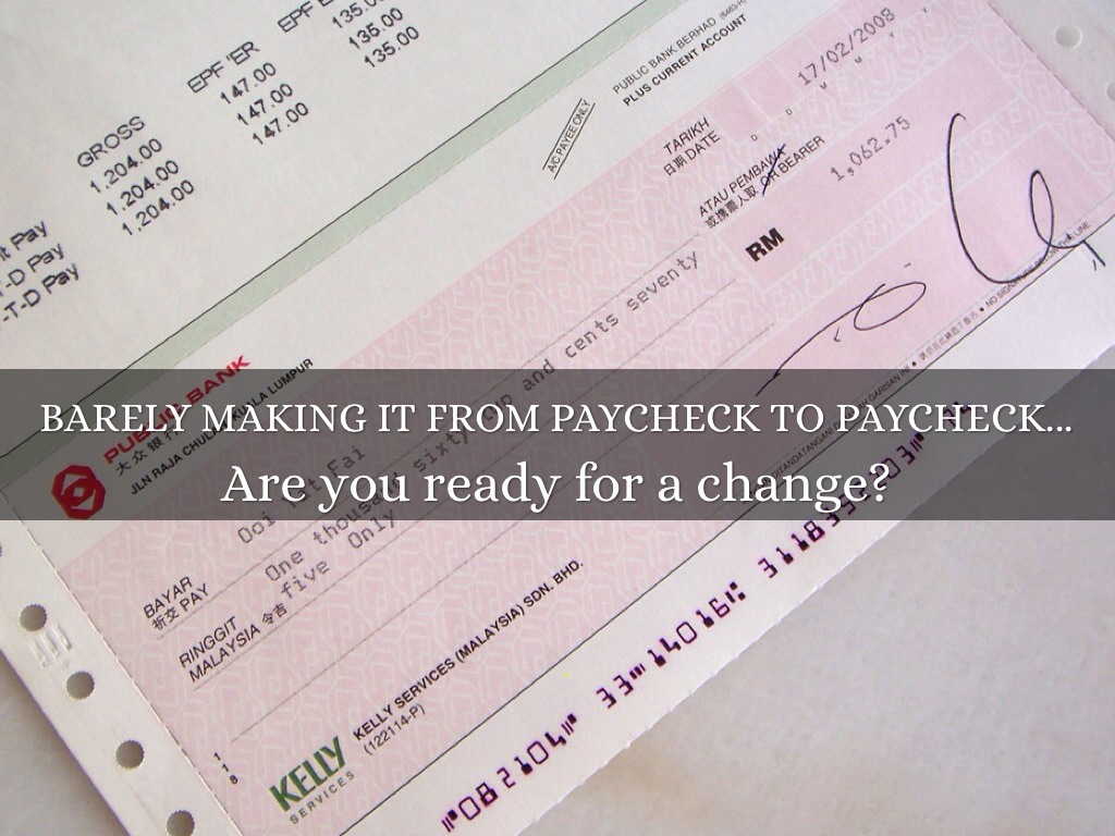 Two family incomes, two part time jobs and creatively trying to make ends meet is no the "norm" for most income earners and they still find themselves living from paycheck to paycheck.