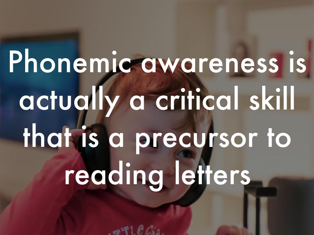 Phonemic awareness is actually a critical skill that is a precursor to reading letters