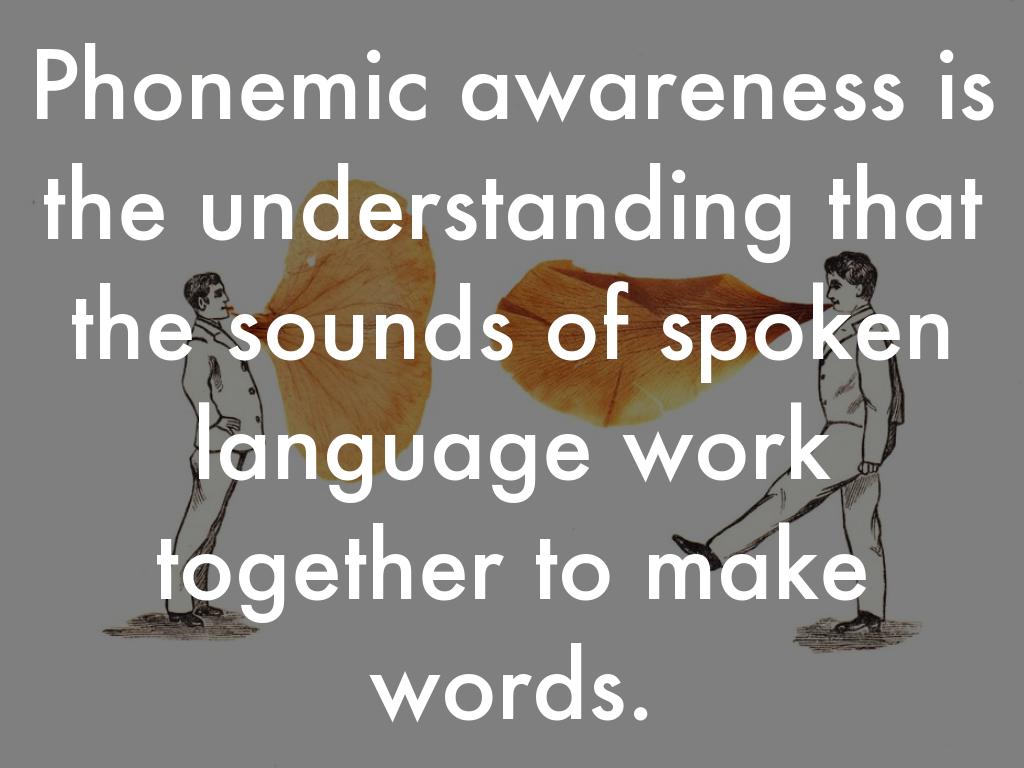 Phonemic awareness is the understanding that the sounds of spoken language work together to make words.