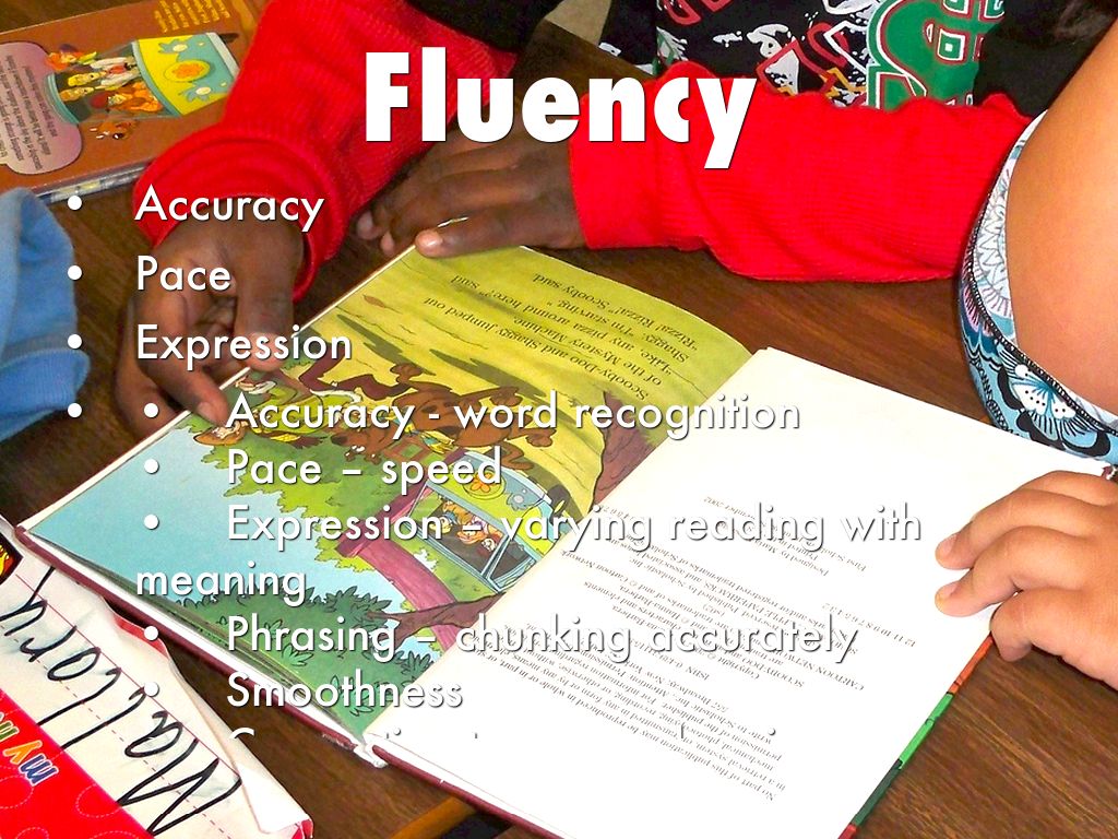 • Accuracy - word recognition • Pace – speed • Expression – varying reading with meaning • Phrasing – chunking accurately • Smoothness • Connection to comprehension