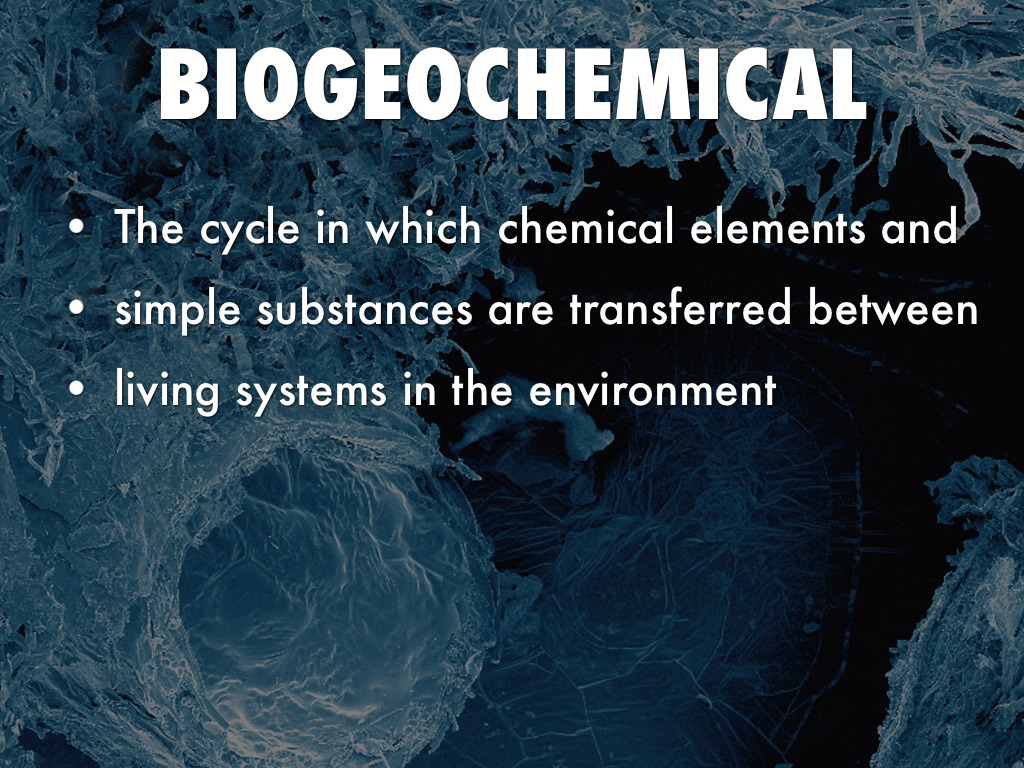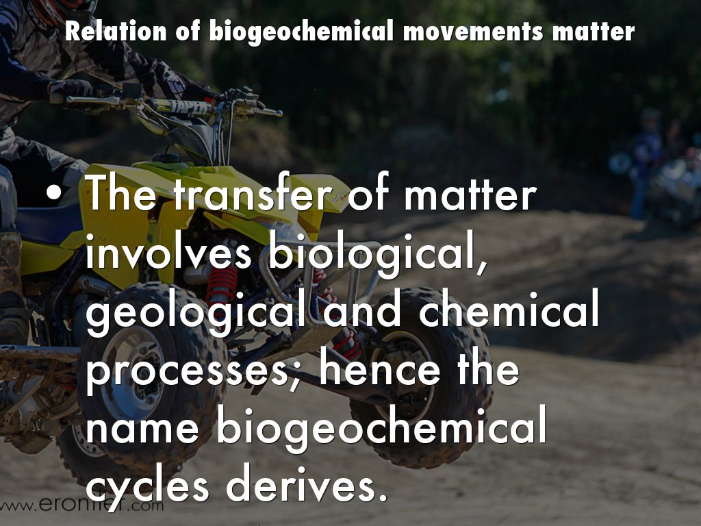 The transfer of matter involves biological, geological and chemical processes; hence the name biogeochemical cycles derives.
