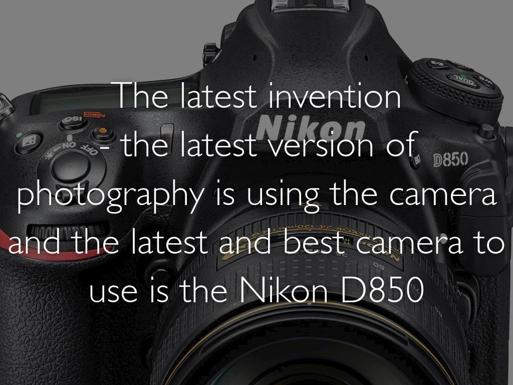 - the latest version of photography is using the camera and the latest and best camera to use is the Nikon D850