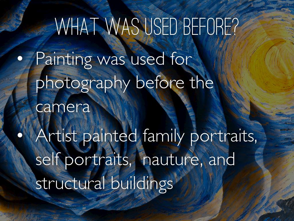 - photography is a form of art, and is used to capture images such as nature, buildings, people, etc.