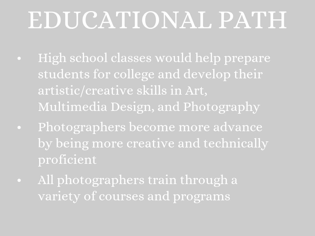 High school classes would help prepare students for college and develop their artistic/creative skills in Art, Multimedia Design, and Photography