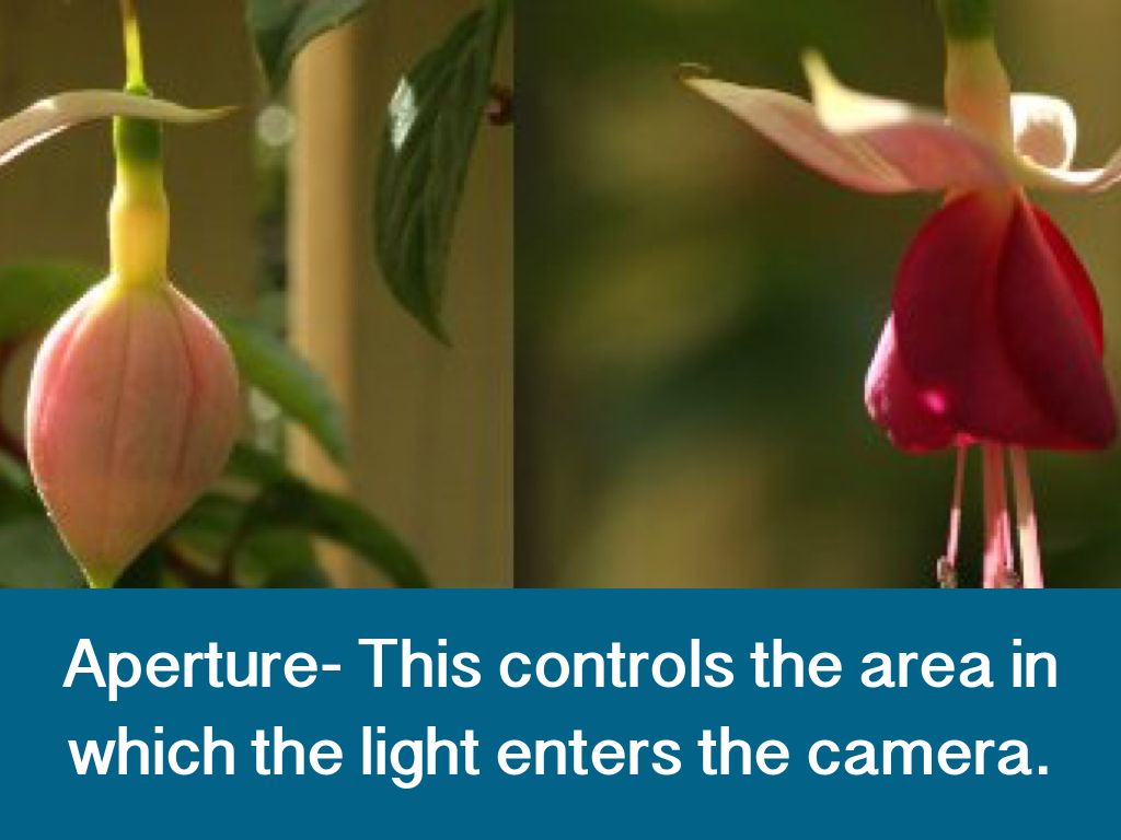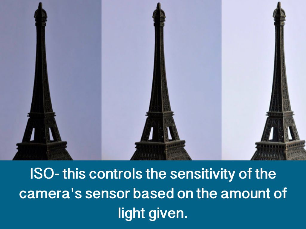 ISO- this controls the sensitivity of the camera's sensor based on the amount of light given.
