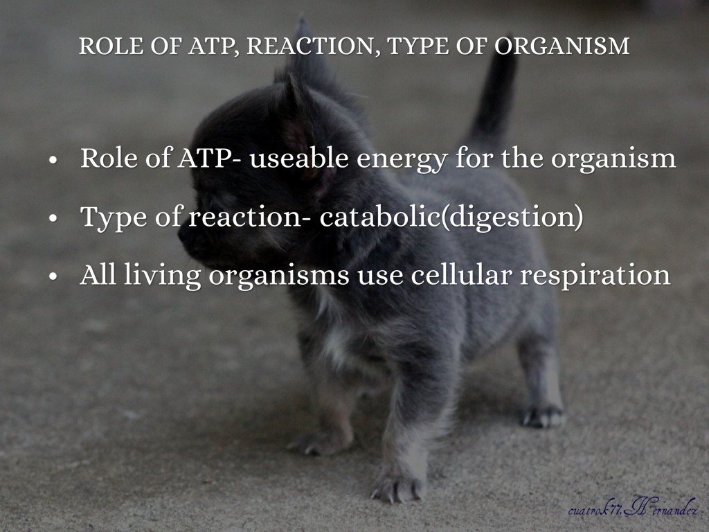 ROLE OF ATP, REACTION, TYPE OF ORGANISM