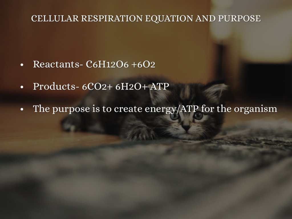CELLULAR RESPIRATION EQUATION AND PURPOSE