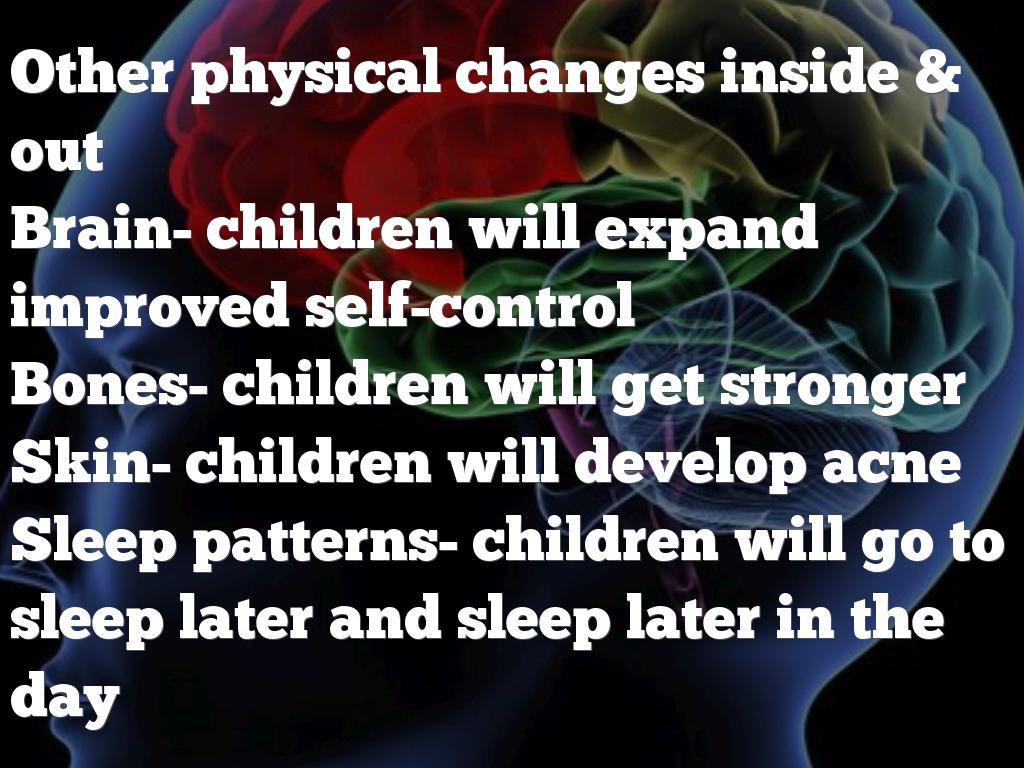 Sleep patterns- children will go to sleep later and sleep later in the day