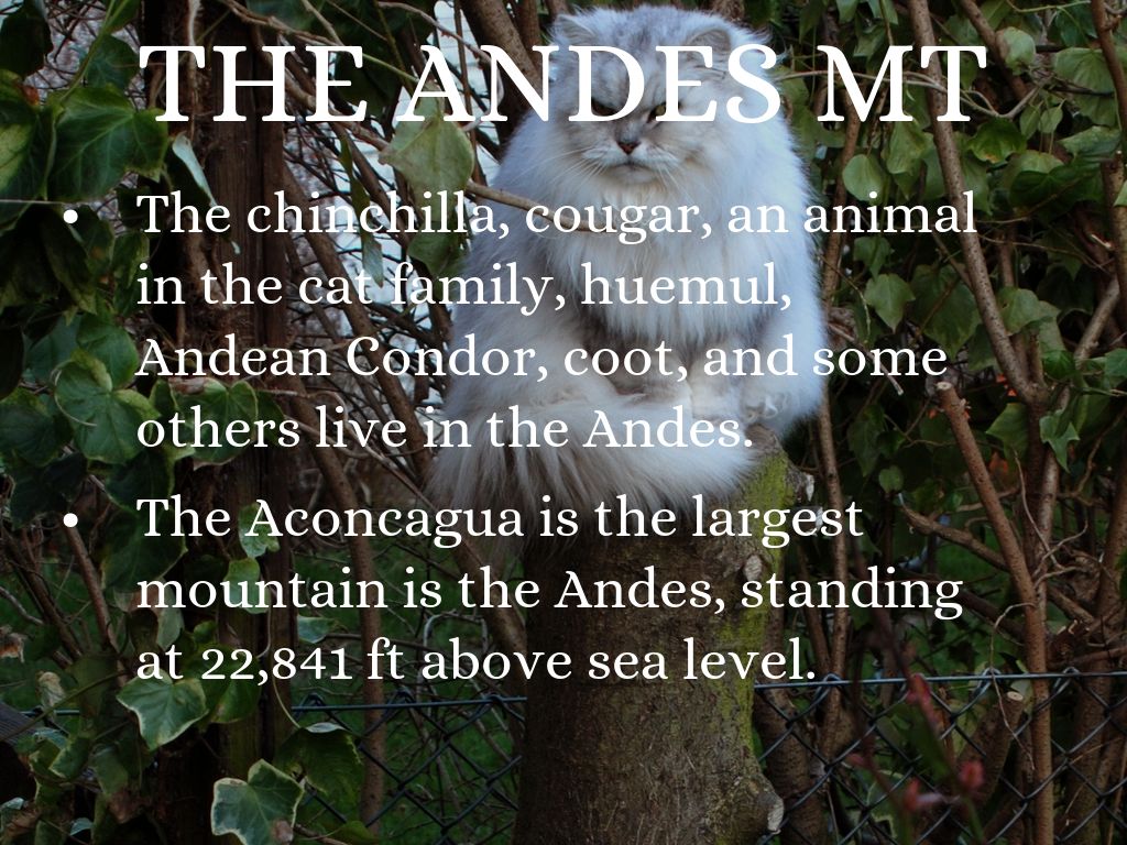 At 3,000 ft above sea level there are rainforests. Going to 6,500 ft, there are grasslands and deciduous forests. At 10,000, there are hardy grasses, shrubs, and coniferous forests. Higher than that, there are the Alpine pastures.