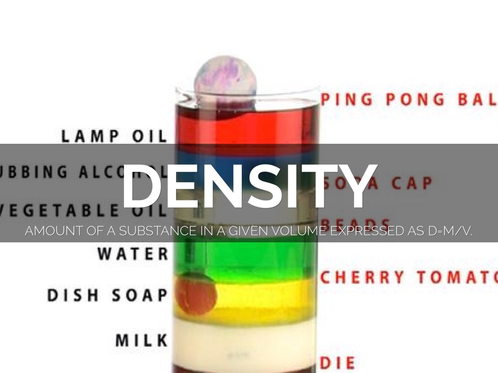 AMOUNT OF A SUBSTANCE IN A GIVEN VOLUME EXPRESSED AS D=M/V.