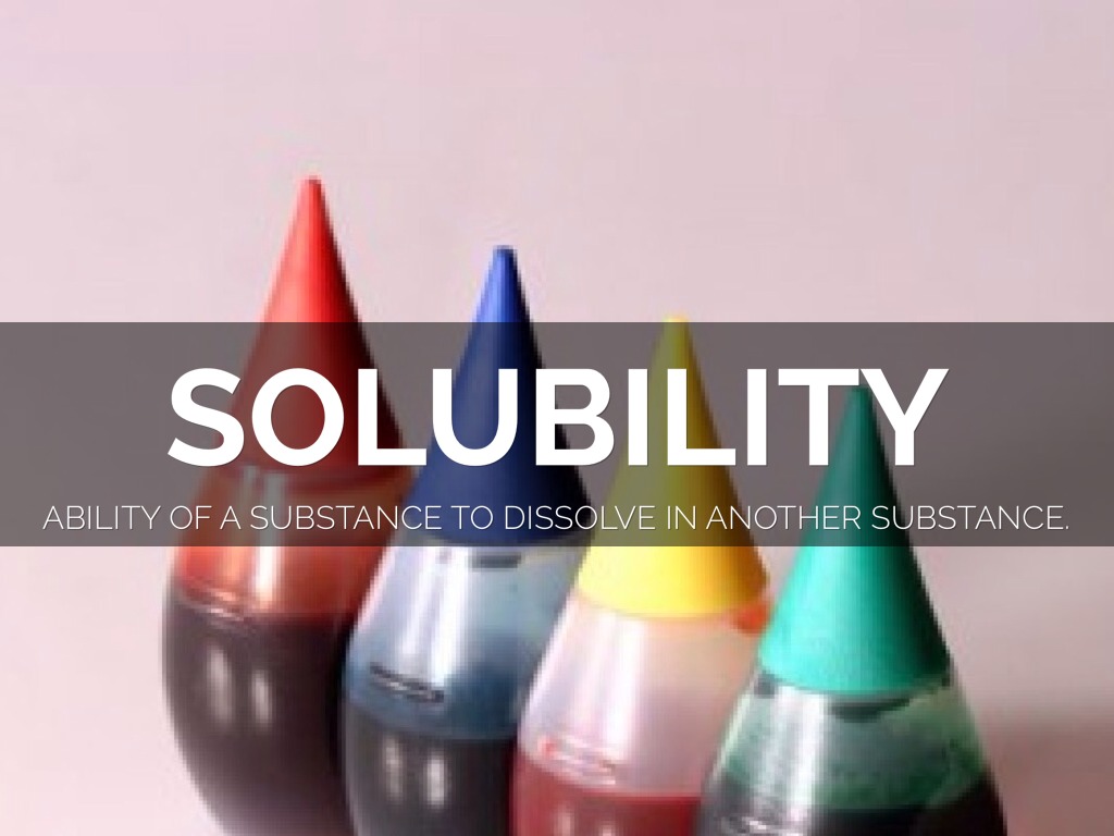 ABILITY OF A SUBSTANCE TO DISSOLVE IN ANOTHER SUBSTANCE.