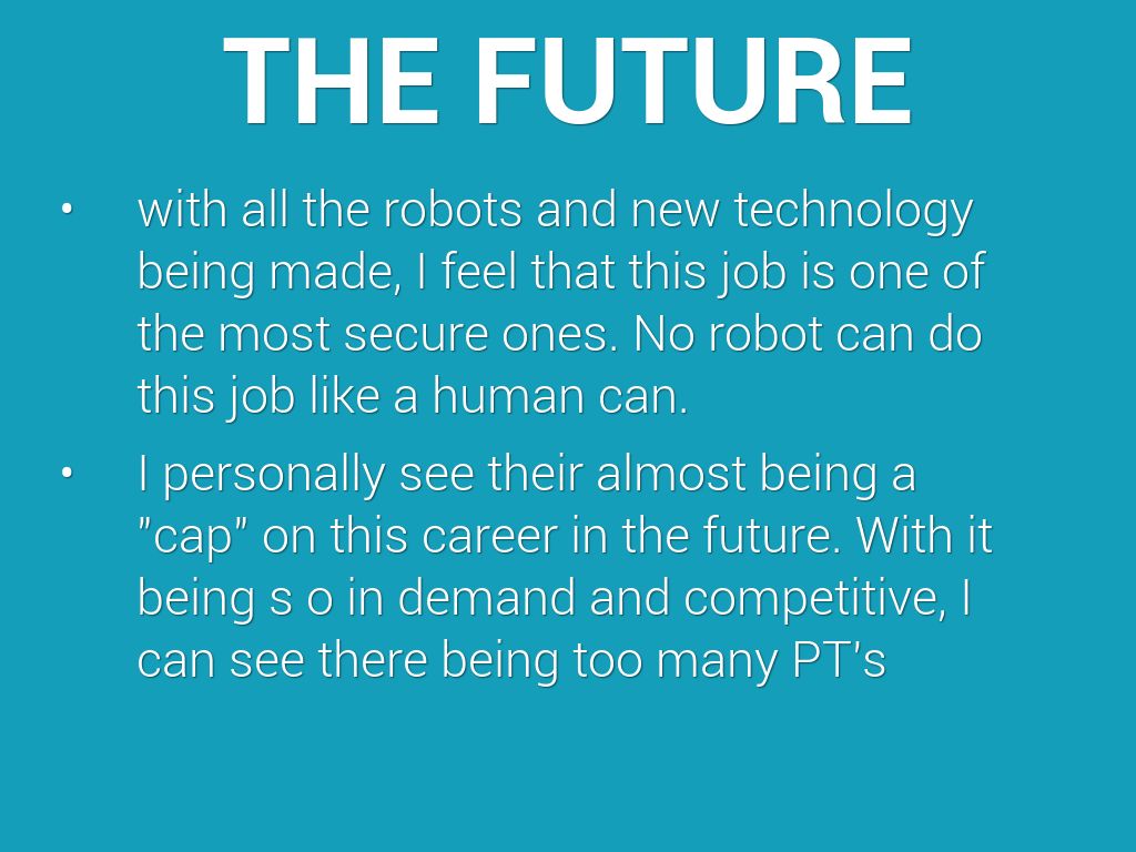 - I personally see their almost being a "cap" on this career in the future. With it being s o in demand and competitive, I can see there being too many PT's